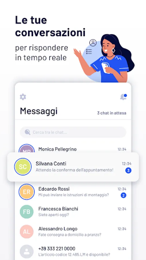 - A single WhatsApp Business number for your entire company: assign chats with customers to your collaborators automatically or manually based on their skills and availability.
