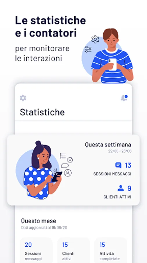 - Analyze data on interactions and activities requested by your customers. Follow the monthly trends to understand the behavior of your users.
