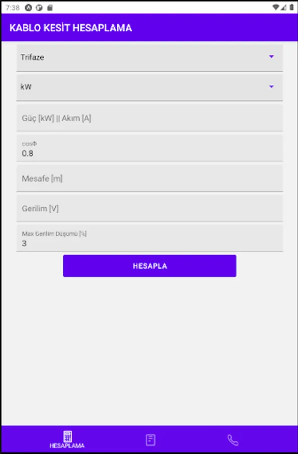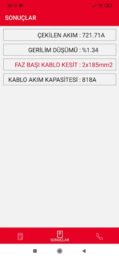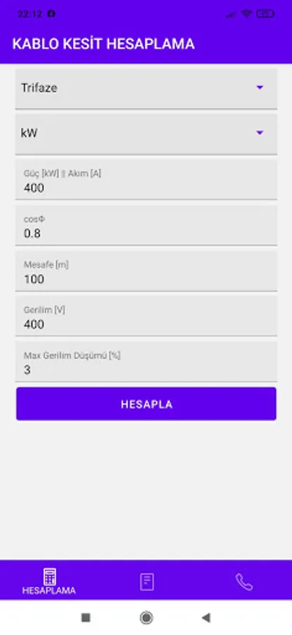 It calculates the required cable section according to the current / power and voltage drop in low voltage installations. It gives the voltage drop that occurs according to this cross section.