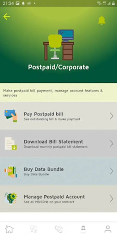 • Postpaid/Corporate Management Services: bill view/download, bill payment, corporate account management