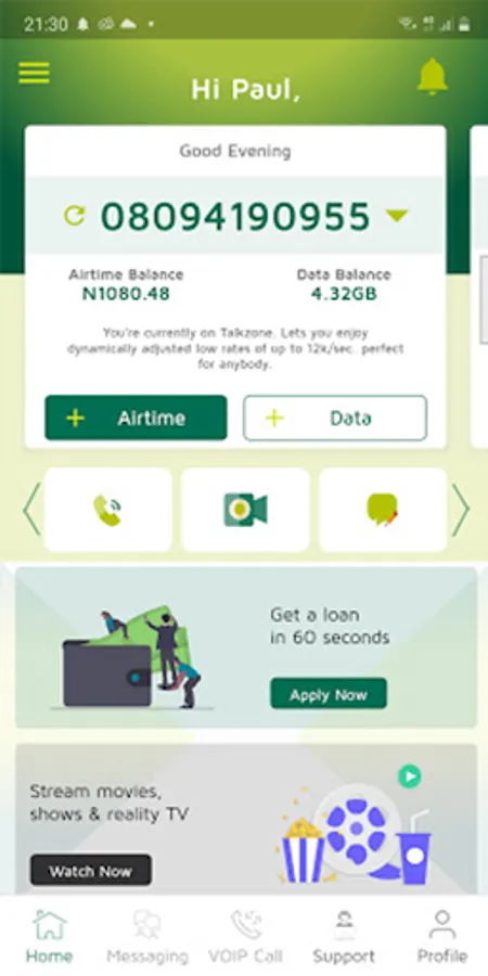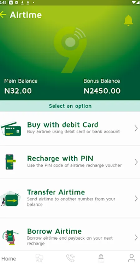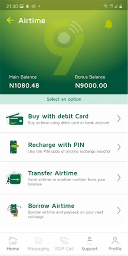 • Airtime services: buy, send/transfer, borrow, check balance/usage