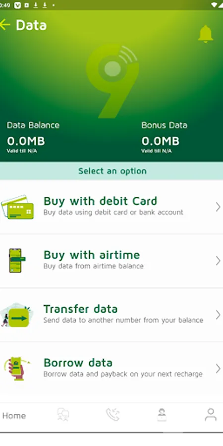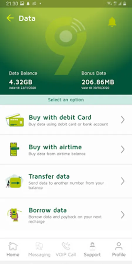 • Data Services: buy, send/transfer, borrow, check balance/usage