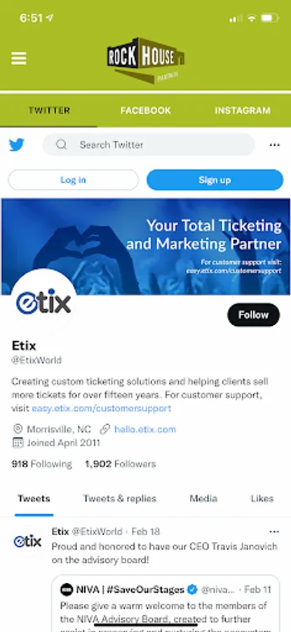 • View upcoming events with the Etix and Rockhouse Partners teams