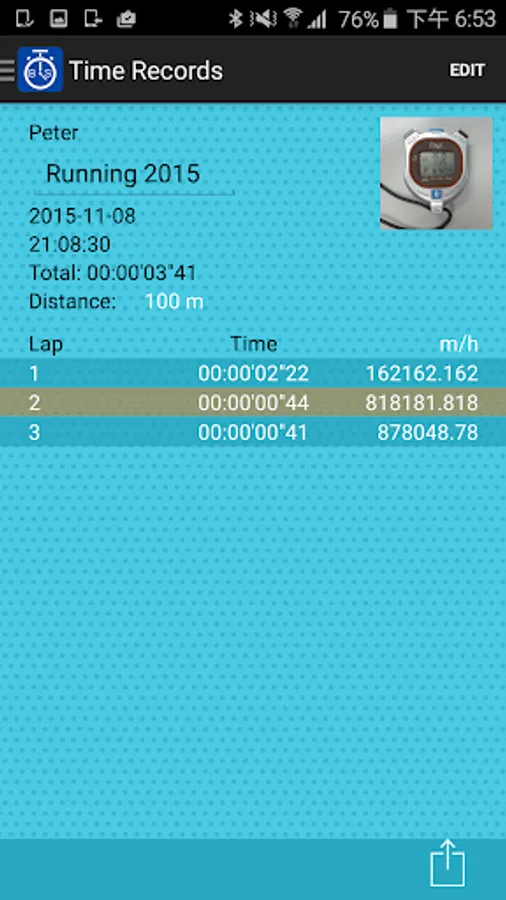 performance of the exercise. The pacer momories is stored in the smartphone and download to the Stopwatch when using