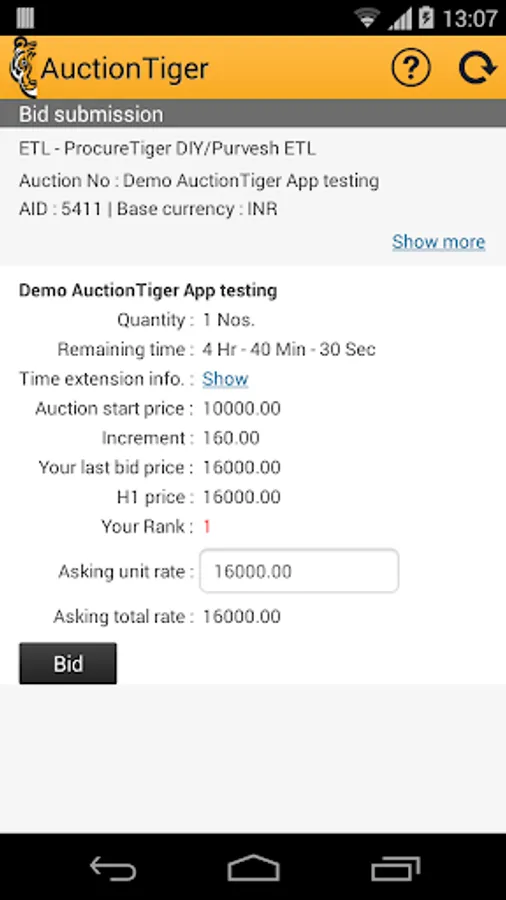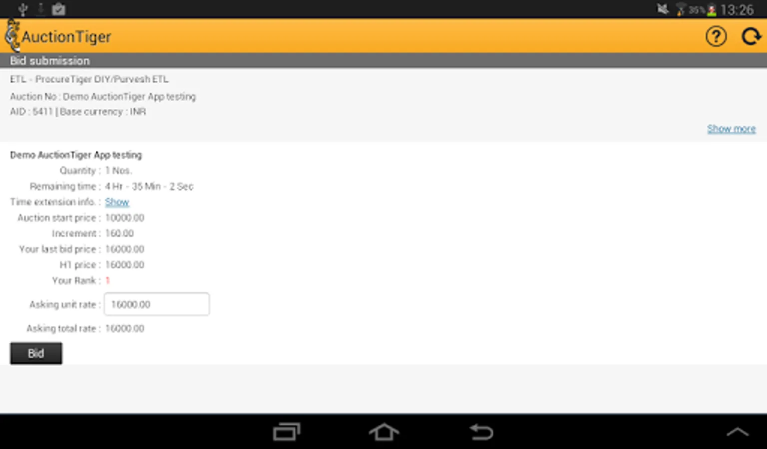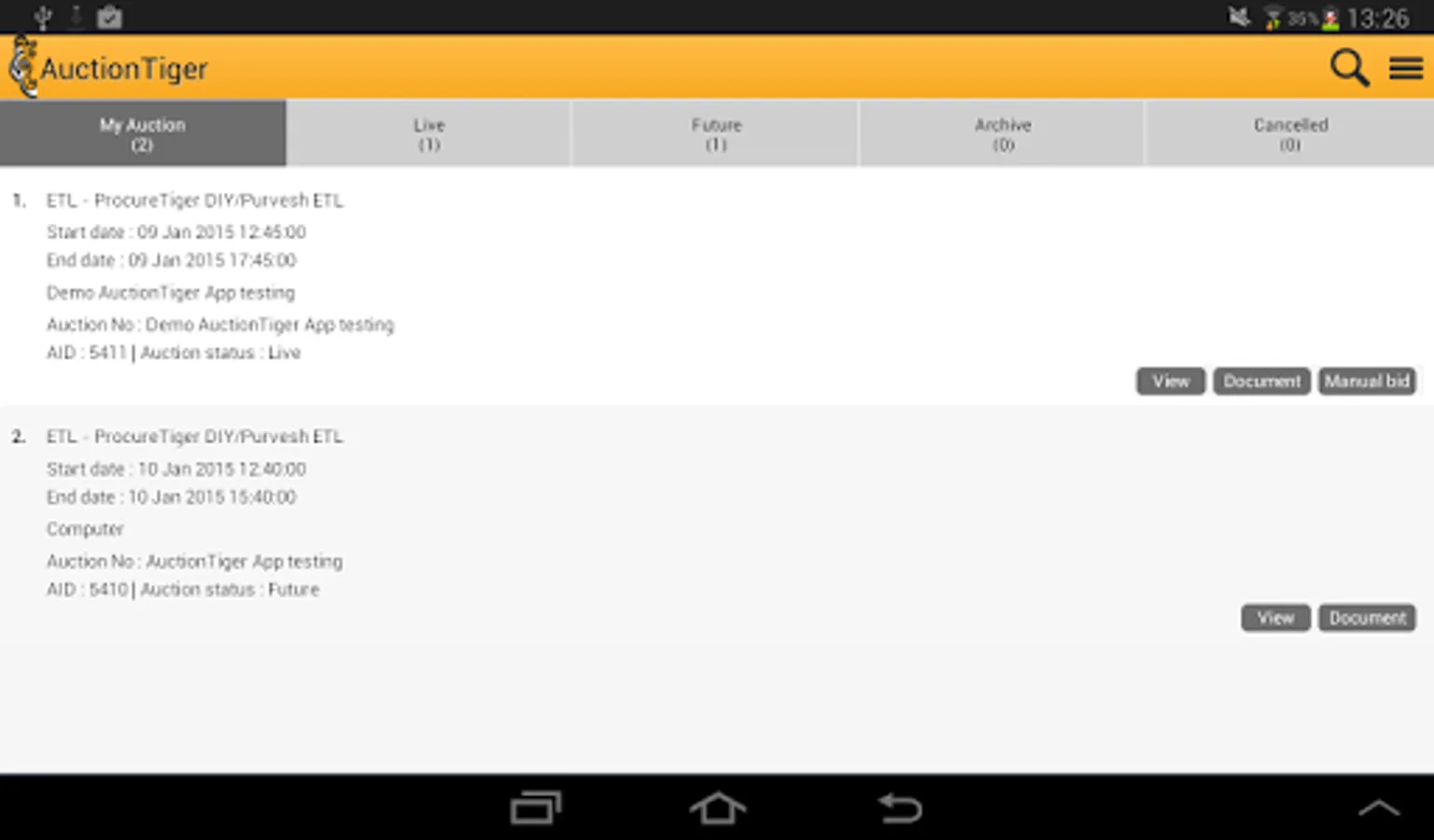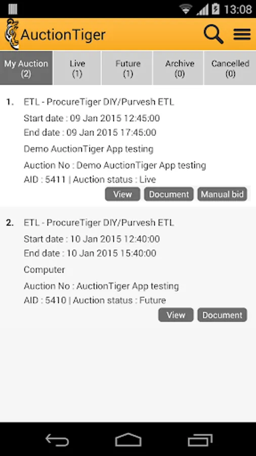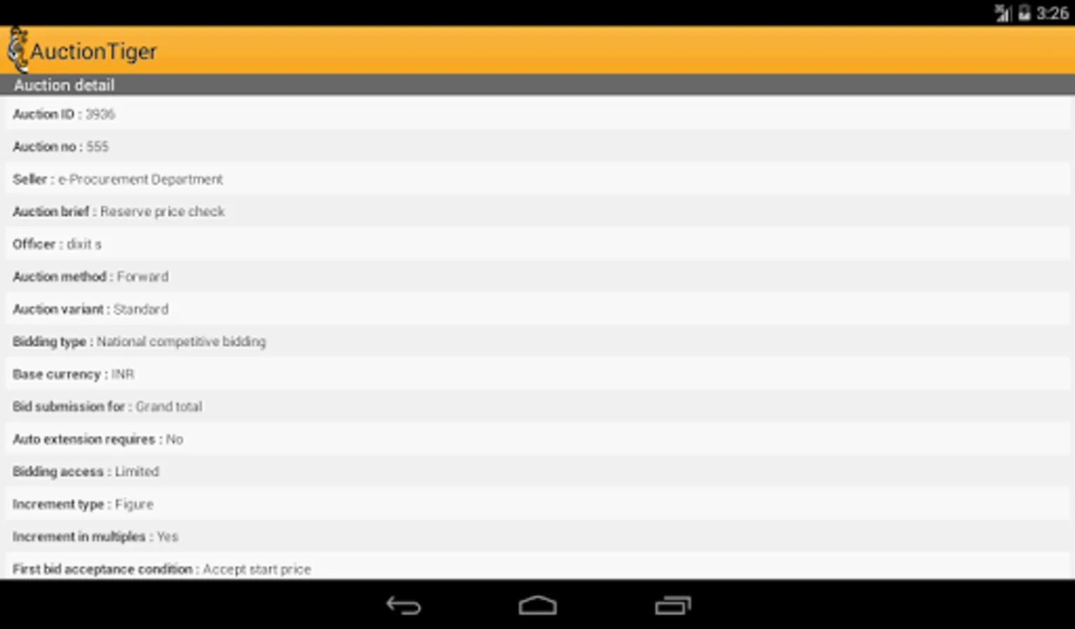 Online bidding made easy. AuctionTiger mobile app. allows to view auction notice, download document and submit your bid in forward auctions listed on AuctionTiger.net. You can also view auction result on real time basis. All you need to do is to download AuctionTiger mobile app. and to register yourself. It takes less than 2 minutes to register yourself.
