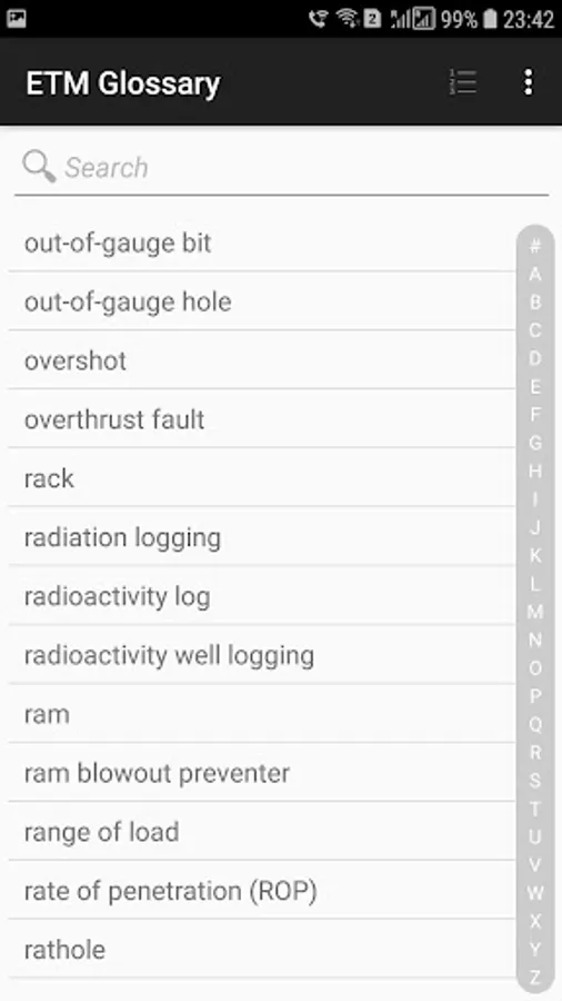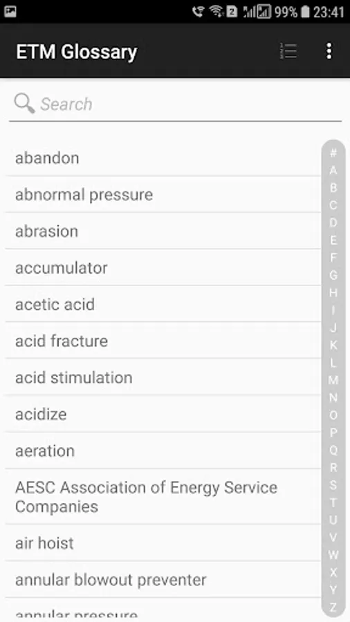 ETM Glossary is a mobile application designed for oilfield people. It allows you to easily search for a list of glossary terms about oil & gas exploration and production.