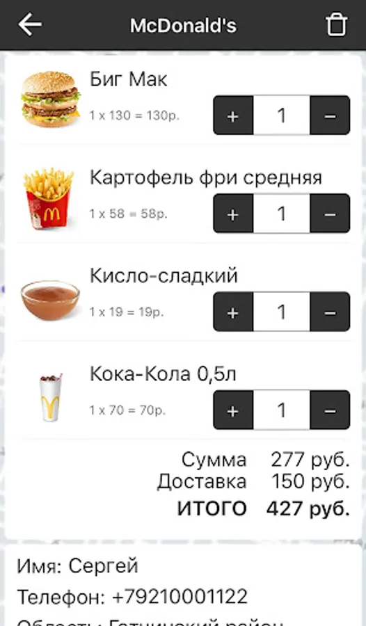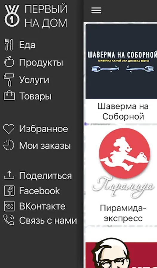 With the application "on the first house" you can easily and quickly order a ready-made food from the popular cafes and restaurants in the city of Gatchina: