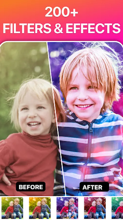 - Crop pictures, adjust contrast, add filters, effects and overlays