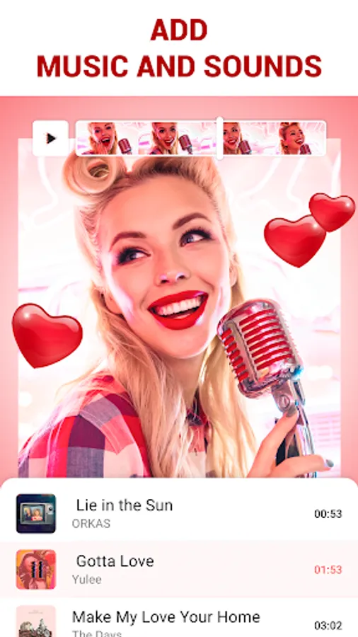 Love filters, overlays with hearts, amorous music - everything is connected with tender feelings and represents passion. Make a video with love.