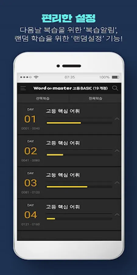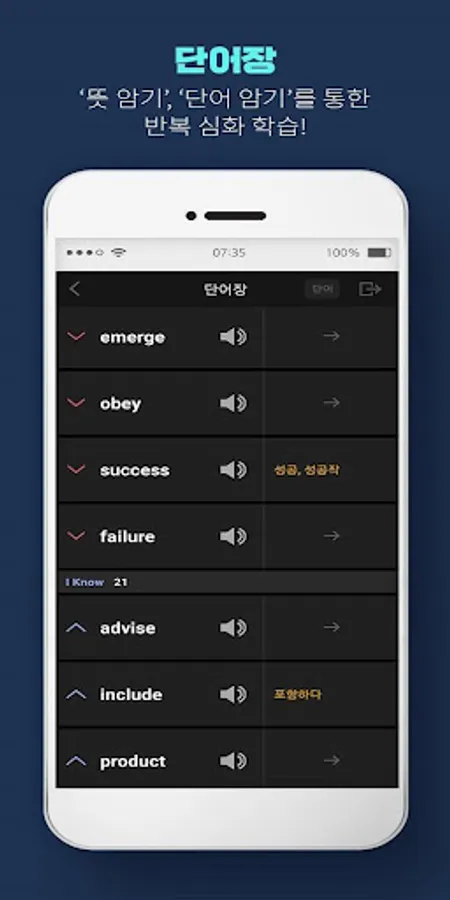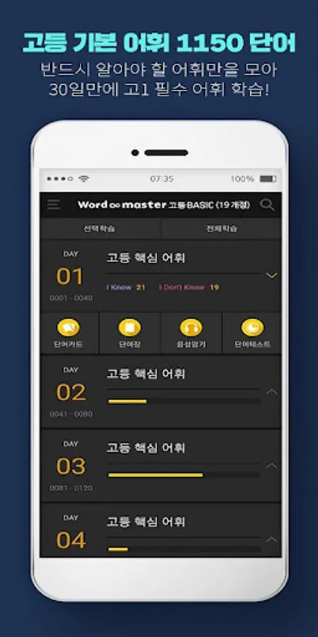 1. Word Card: Word Master's unique 'Yes I Know' learning method allows you to check words, meanings, and example sentences on one card, and it is easy to move to the next word with a single touch.