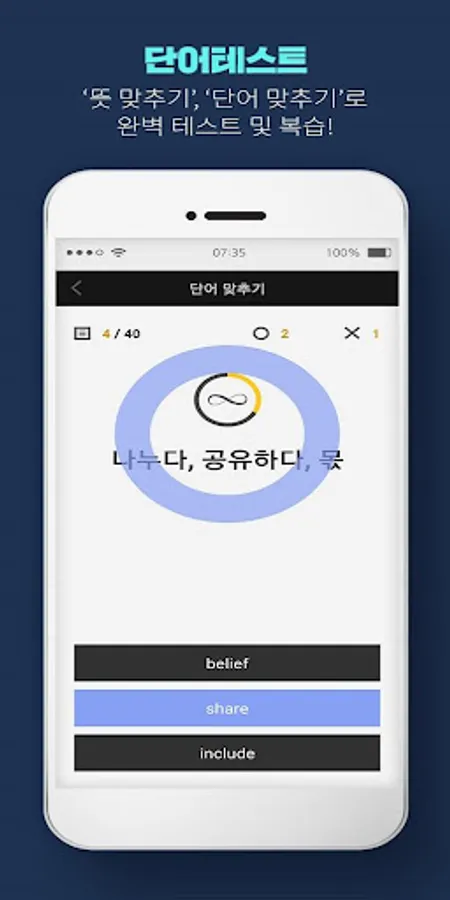 4. Match meaning/match words: You can check and review memorized words through a word test.
