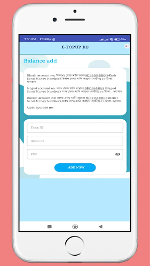 ৭।নিজের ব্যালেন্স নিজের অ্যাড করে নিতে পারবেন।