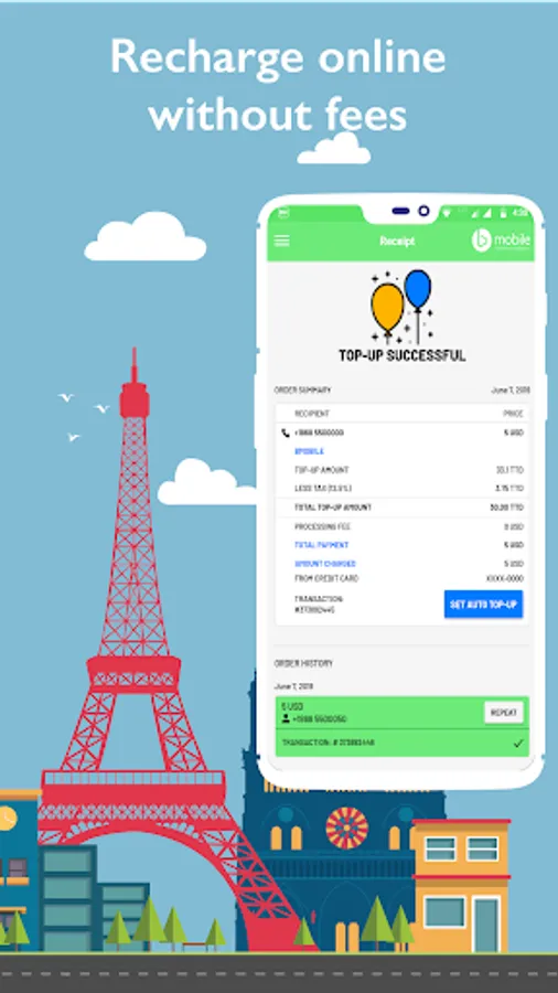 • Quickly Repeat Your Last Top Up - Single touch "Repeat Top Up" option lets you send to the same phone number with the same amount instantly.
