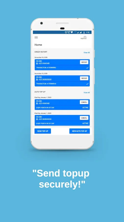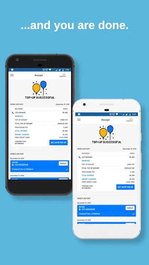 • Quickly Repeat Your Last Top Up - Single touch “Repeat Top Up” option lets you send to the same phone number with the same amount instantly.