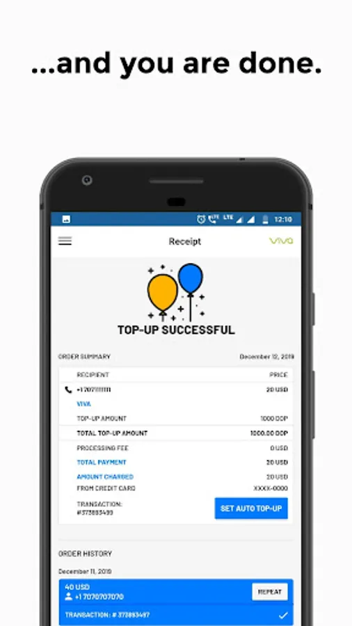 • Quickly Repeat Your Last Top Up - Single touch “Repeat Top Up” option lets you send it to the same phone number with the same amount instantly.