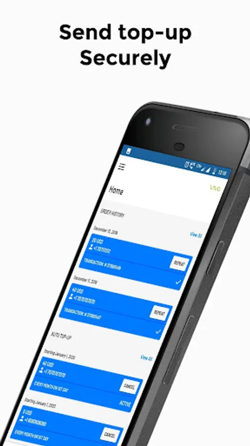• Single Login – Use your same account on the Viva website and the Top-Up App.