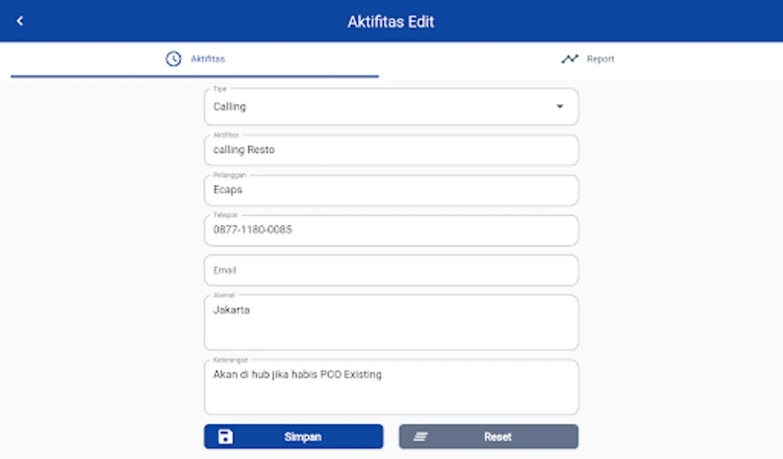 The ETOS Sales application is an activity timeline input tool used by AE (Account Executive) via smartphone so that it can be more flexible and can be done anytime and anywhere.