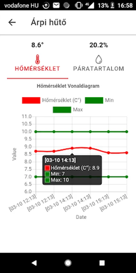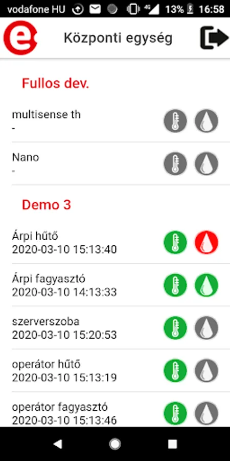 Application for sensing temperature and humidity measured by sensors and for measuring above limit values.