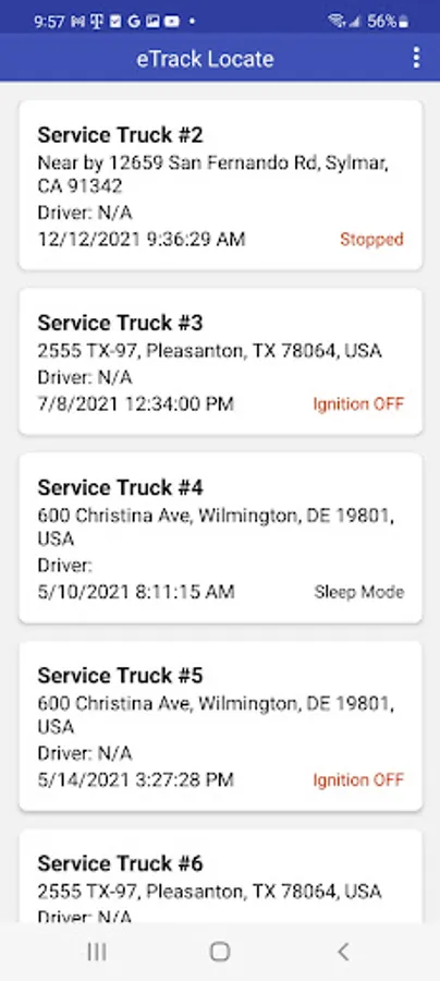 - View in one list all your vehicles along with their last known location, status (Ignition On, Ignition Off,