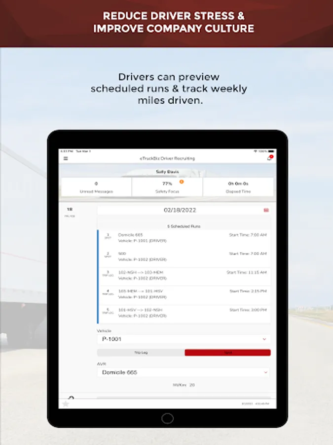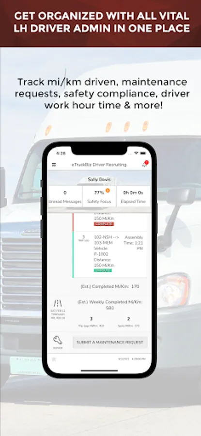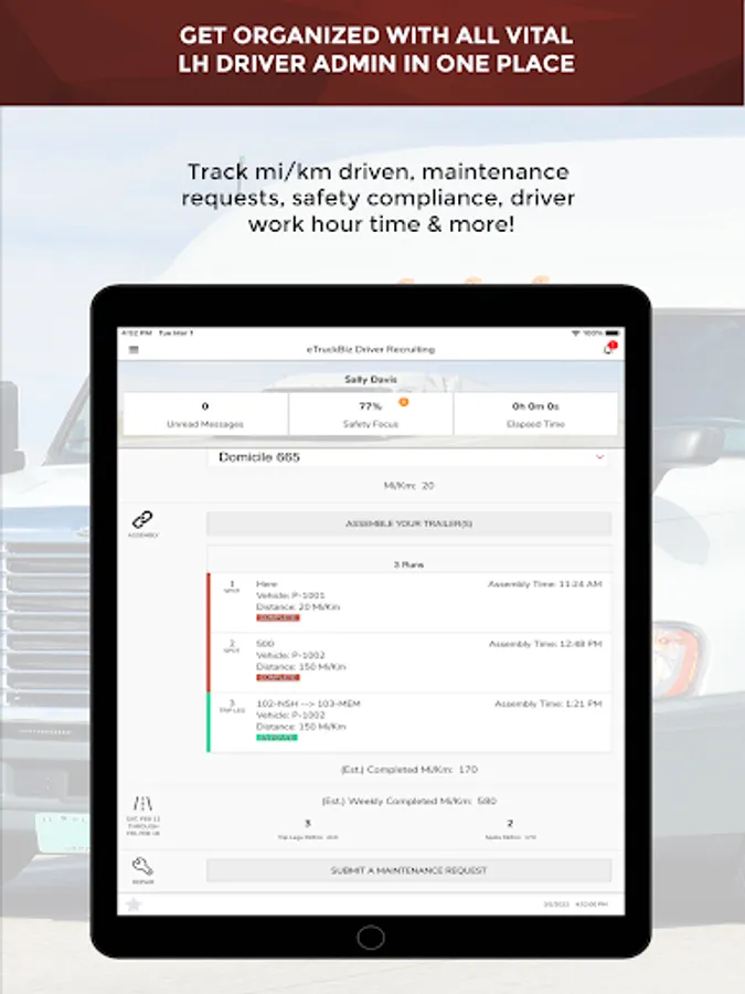 The LineDrive app from eTruckBiz is everything an FXG (contracted) linehaul driver needs to easily handle your daily dispatch, assembly logs, and safety compliance.