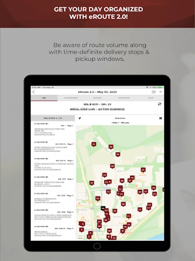 • eRoute - Your daily sequenced manifest in a ridiculously simply, yet tremendously effective format that makes it fast and easy to find your way around, without having to be a computer programmer just to use the app