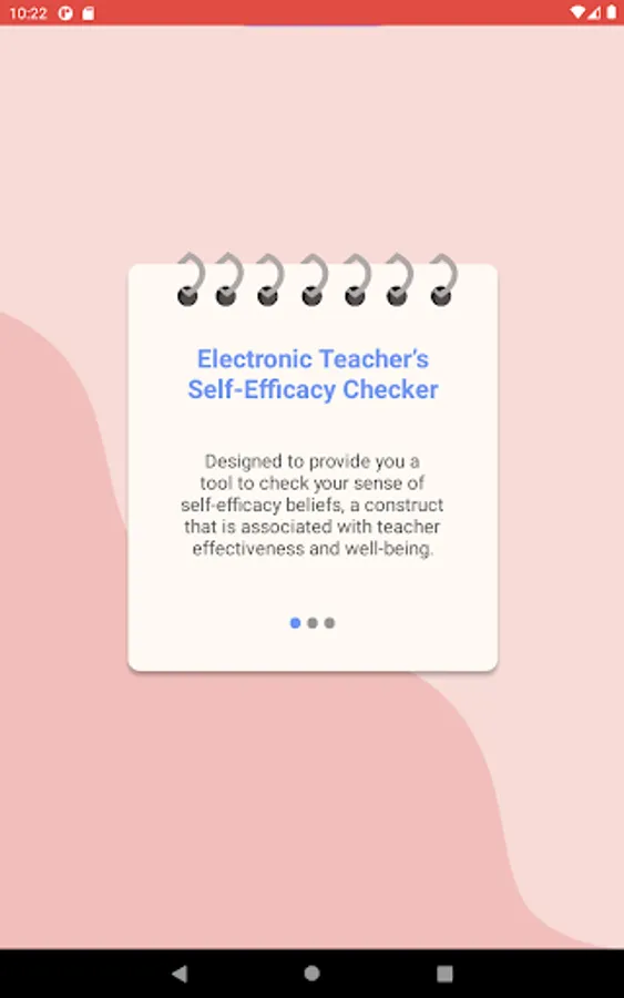 This app is designed to provide you a tool to check your sense of self-efficacy beliefs, a construct that is associated with teacher effectiveness and well-being. Research shows that your self-efficacy beliefs guide your future classroom behaviors, which consequently increases your students’ learning outcomes. Your honest and thorough self-assessment of the various factors that predict your self-efficacy will generate an output that will link to a professional development resource that outlines strategies for you to implement to help further enhance your self-efficacy.