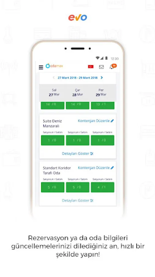It’s now quite easy to meet your property with millions of guests via Etstur and Odamax.com which bring thousands of properties from all around the world! Just download EVO, the mobile application of Etstur and Odamax extranet. You can easily manage your sign-up operations and property facilities through EVO at any moment on your mobile. Download EVO free and open up to each corner of the world with Etstur and Odamax.com privilege.