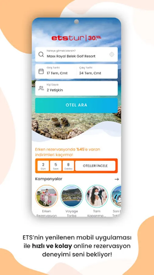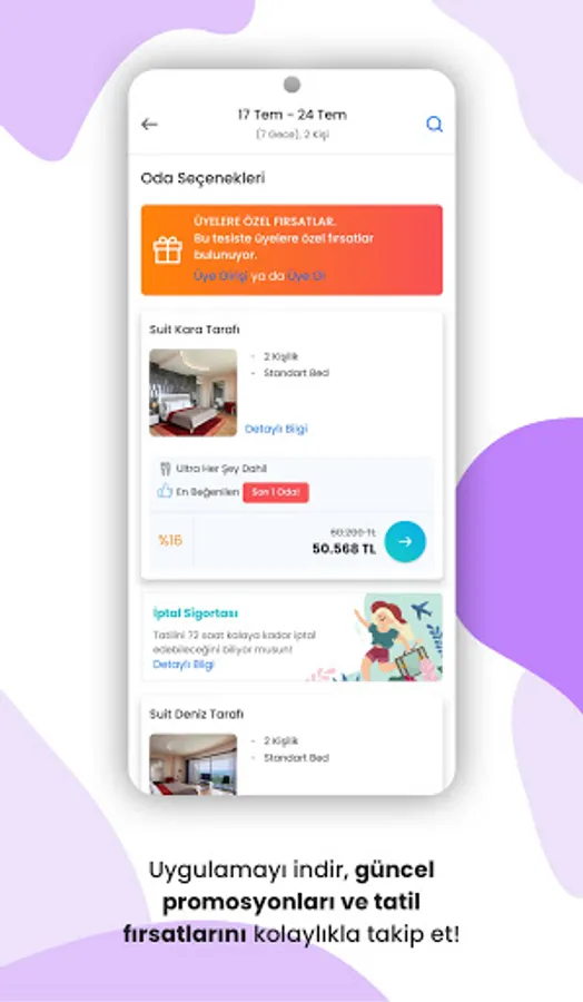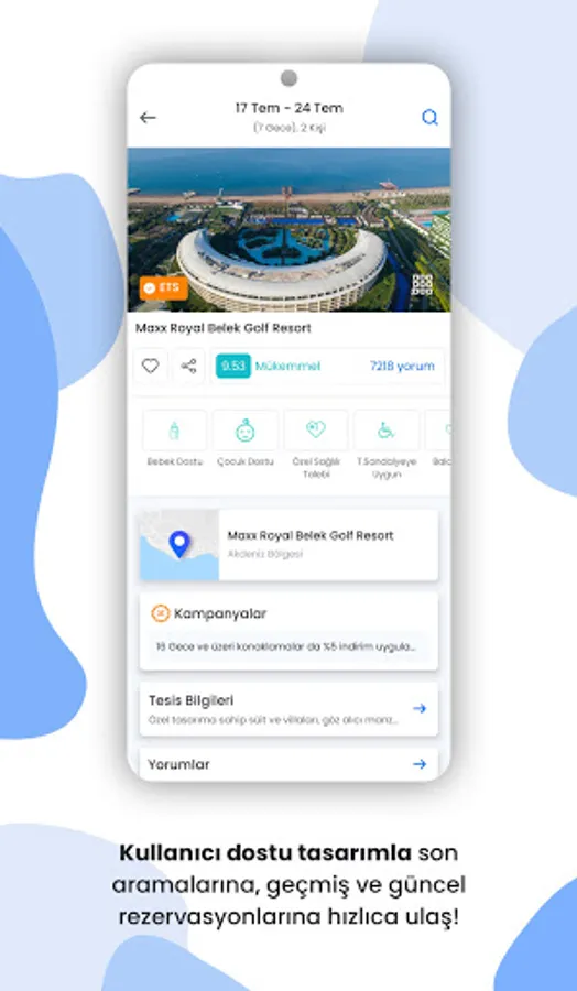 A holiday opportunity awaits you at any moment with special advantages in the mobile application! By downloading the application, you can be informed about special discounts and seasonal campaigns, and you can easily make reservations. You can be informed about special campaigns for different periods such as early booking, semester, holiday and summer deals, and you can easily take advantage of last-minute deals.