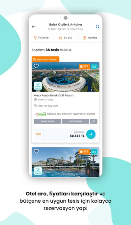 In the new application that stands out with its user-friendly design; With rich filtering options, you can search for hotels, compare prices and easily book the most suitable facility for your budget. With the application that offers a personalized user experience, you can quickly access your recent calls, past and current reservations.
