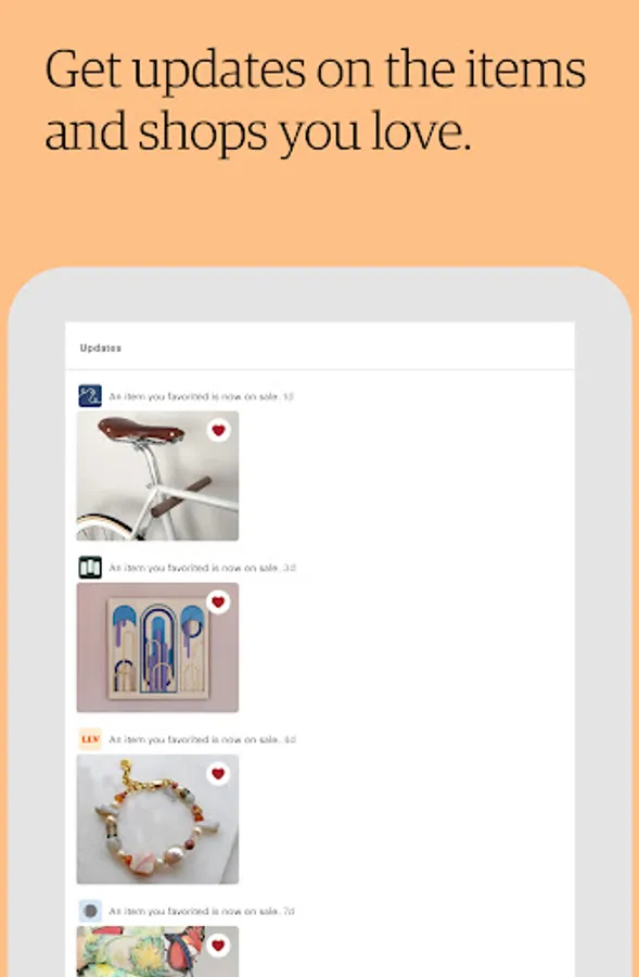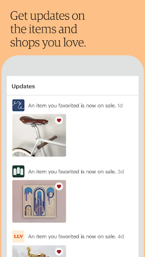 Customize the notifications that you get pushed to your phone. Get instant updates on specials, offers, and coupons from the shops that you favorite, so that you don’t miss out on limited editions. Receive personalized notifications for new shops, items, and events related to your shopping history, and more!