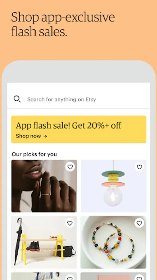 Inspiration can strike at any moment. With the Etsy app, you can take or upload a photo to search for products in an instant. If you’re out celebrating at a themed restaurant or visiting a friend with a unique style, you’ll be able to find whatever it is that inspires you.