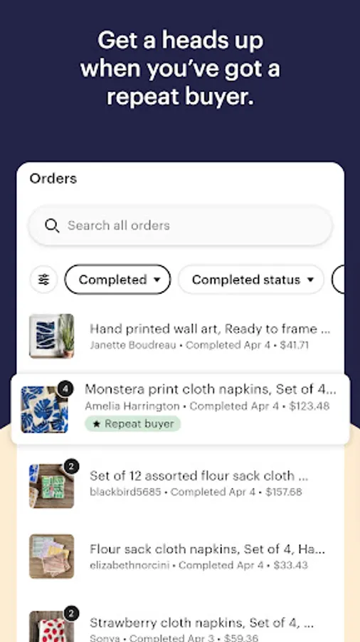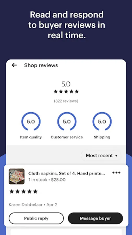 Etsy Seller is the newest way to manage your shop on the go. It’s got everything you need to easily respond to customers, create and edit listings, see your shop stats, and manage your orders.