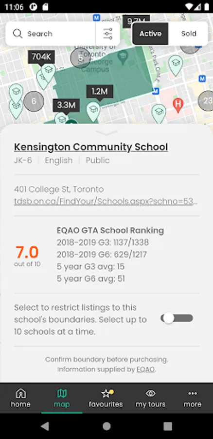 Schools are important to many of us when making property considerations, so Ettie makes it easy by integrating school data into our application. We include the important details, such as EQAO ratings and school boundaries, so you can make a confident and informed decision!