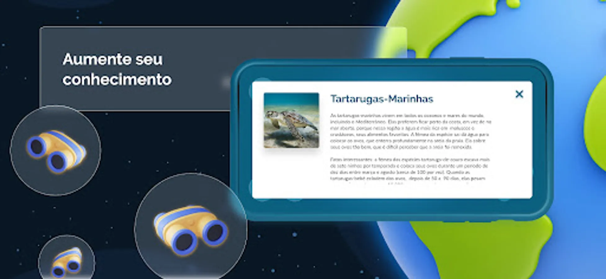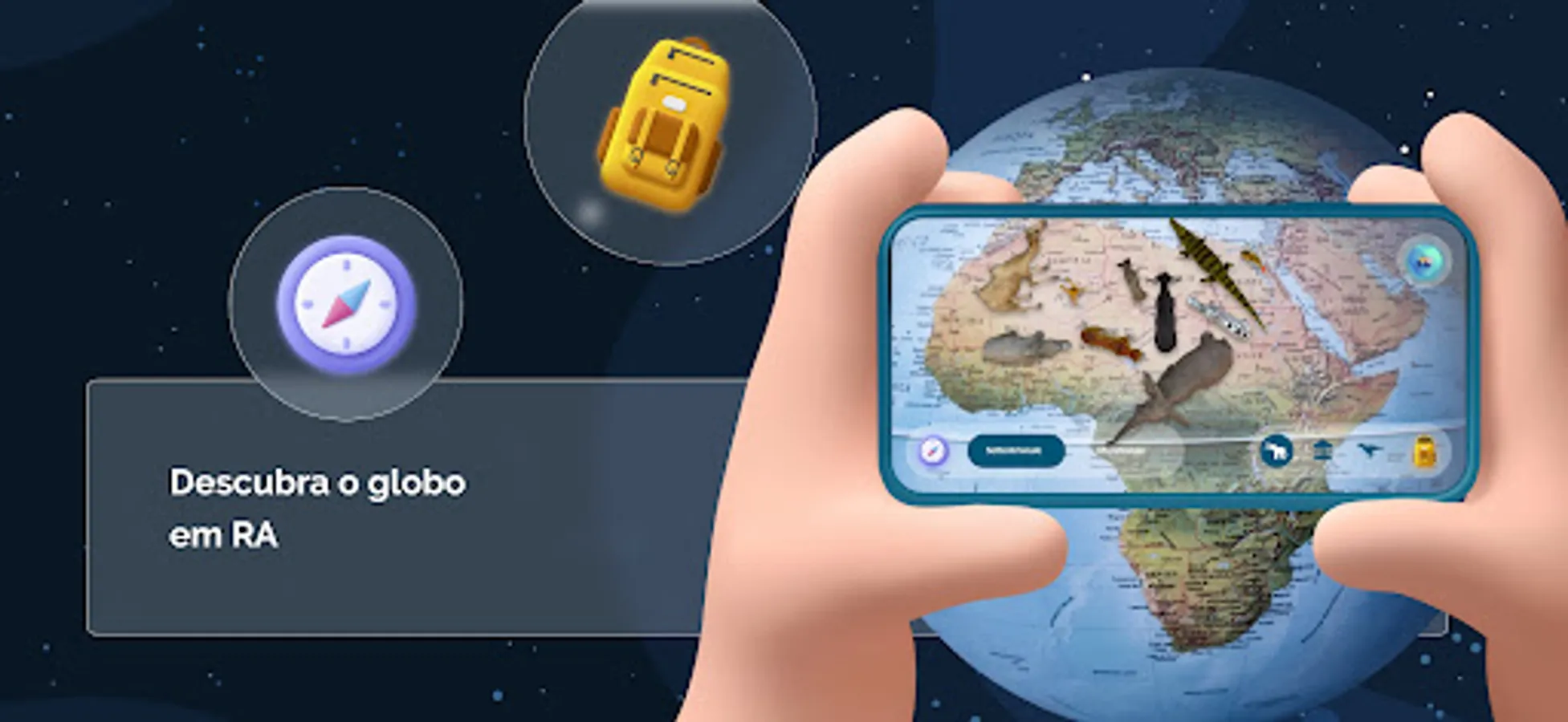 By focusing your device's camera on the sphere of the globe, it will be possible to view animals, plants and important geographic locations in 3D.