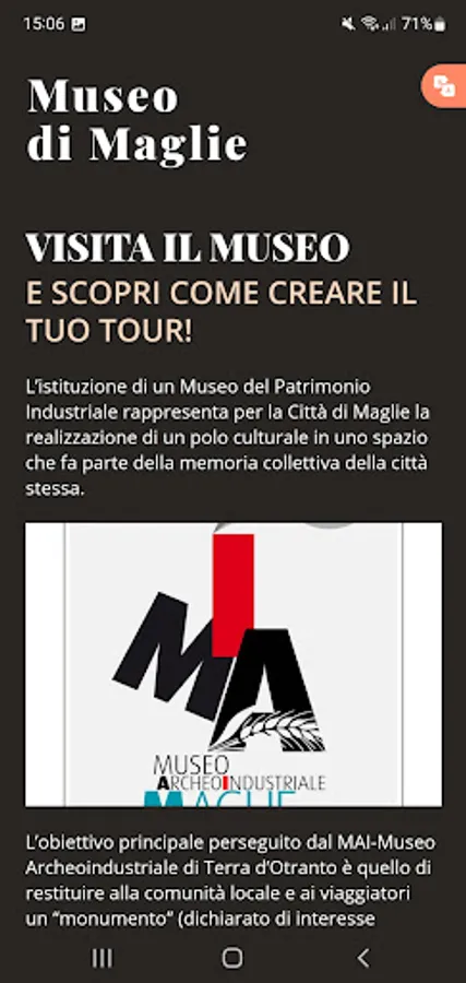 The establishment of an Industrial Heritage Museum represents for the City of Maglie the creation of a cultural center in a space that is part of the collective memory of the city itself.