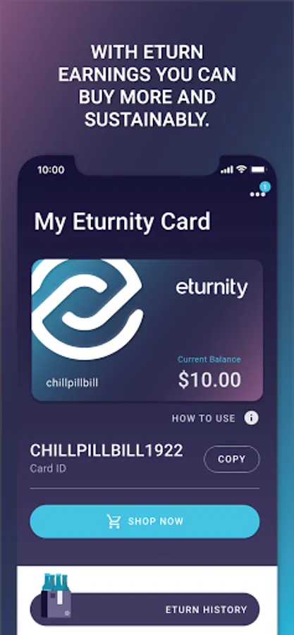 Eturn the container for cash a value that is added to your Eturnity Rewards Card.