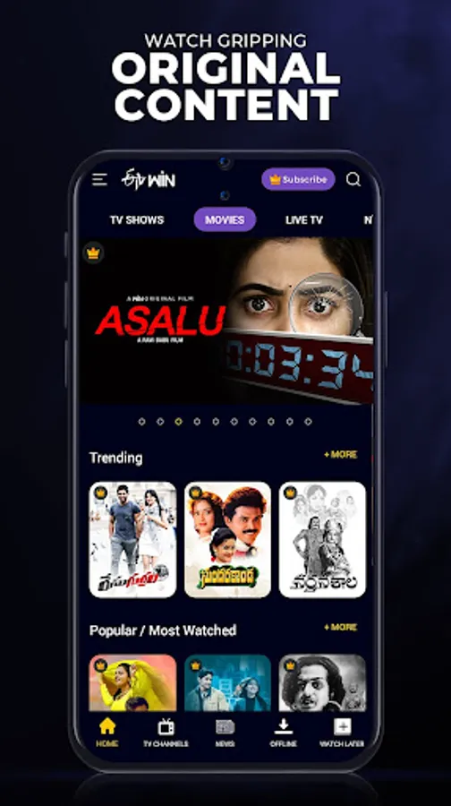 Etv Win is here to provide you with content that you long for and are eager to watch! Be it old movies, a comedy show that makes your stomach hurt, or freshly baked original content, we are here!