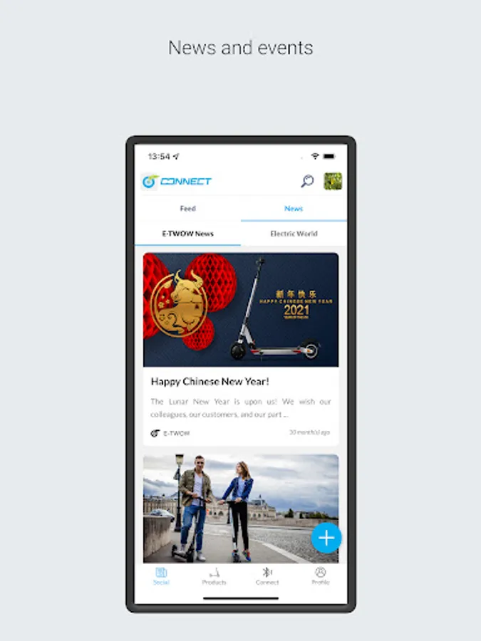 This is the official application of the E-TWOW community. Use this app to configure and control your E-TWOW Electric Scooter*, but also to keep up with the latest developments in the world of electric mobility. The application allows you to connect your smartphone to the electric scooter using Bluetooth Low-Energy capabilities.
