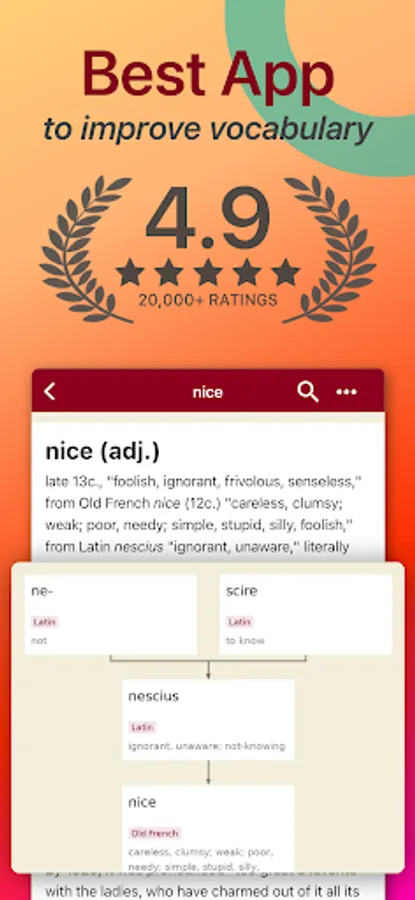 The official, complete app of Douglas Harper's Online Etymology Dictionary, with useful features to help you understand the origins of words as well as improve your vocabulary.