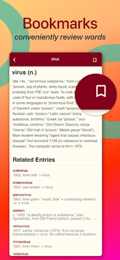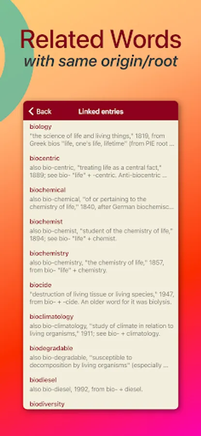• Offline dictionary - Search and view etymology without the need of an internet connection