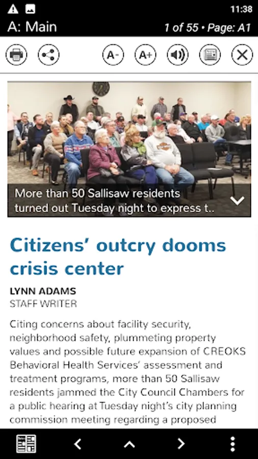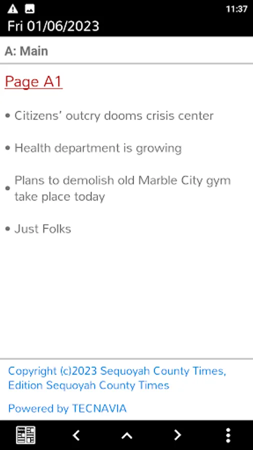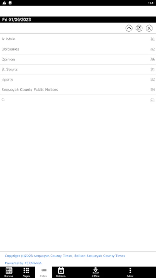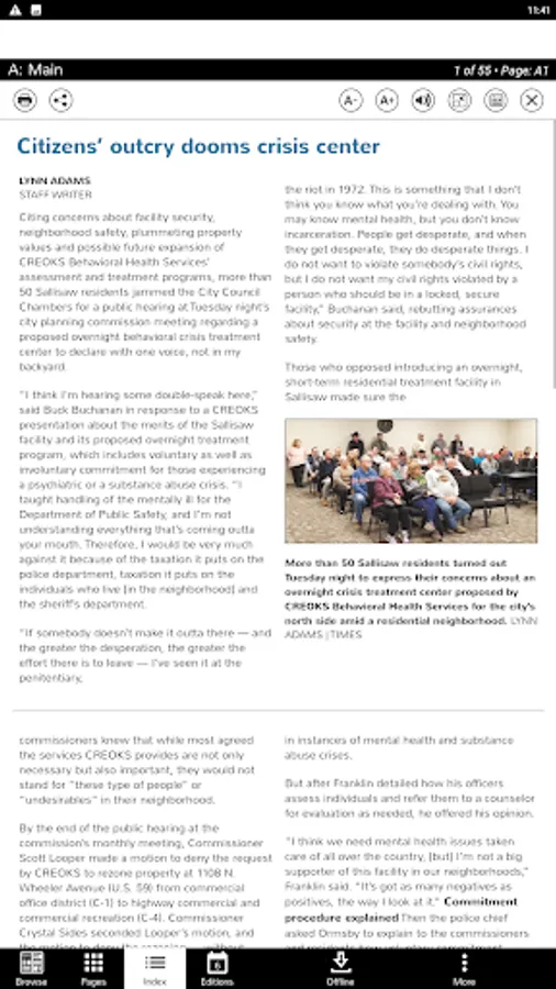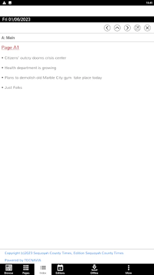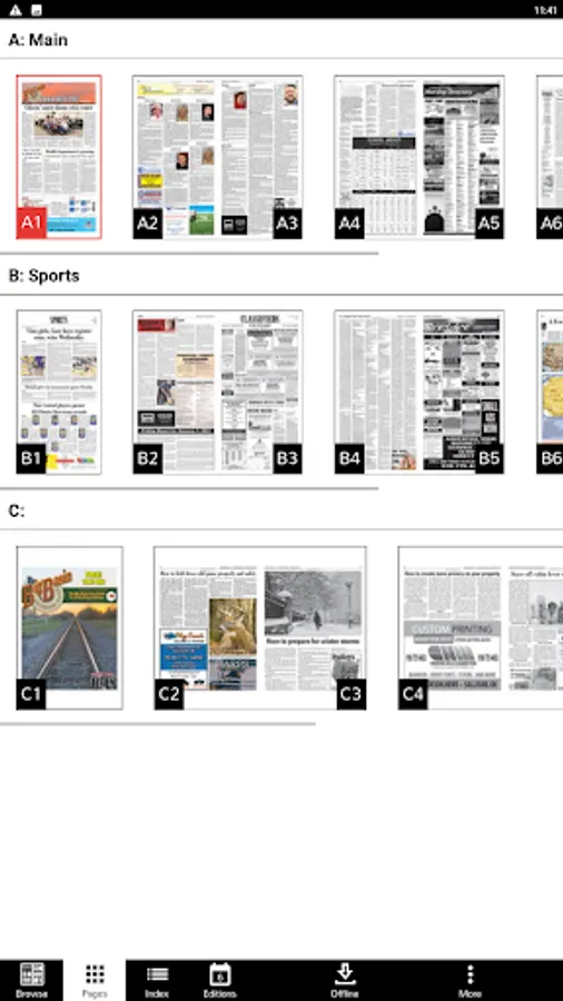 Readers can quickly navigate the entire publication using android multi-gestures. Swipe to browse pages or sections or tap a live headline or page number to reach your favorite article. A thumbnail view lets you scan all the pages at once. To read a story, just tap to zoom the page image, or tap to article mode and read the whole story, including jumps, in the text window at the font size you prefer. The eEdition will also let you easily find topics using the section and story index, or find any ad or story via a full text search of words contained in the copy. The eEdition is published on the same schedule as the print edition. Just open the app to get the latest edition for on-line or off-line reading. You can also access back issues that you might have missed.To use, just download the app and select your publication. Access typically requires an account login and password that is provided to subscribers. Check with your publication for details. The app provides free access to a demo edition so you can try out the eEdition before subscribing. If you subscribe to several participating papers, the app will let you switch among them.