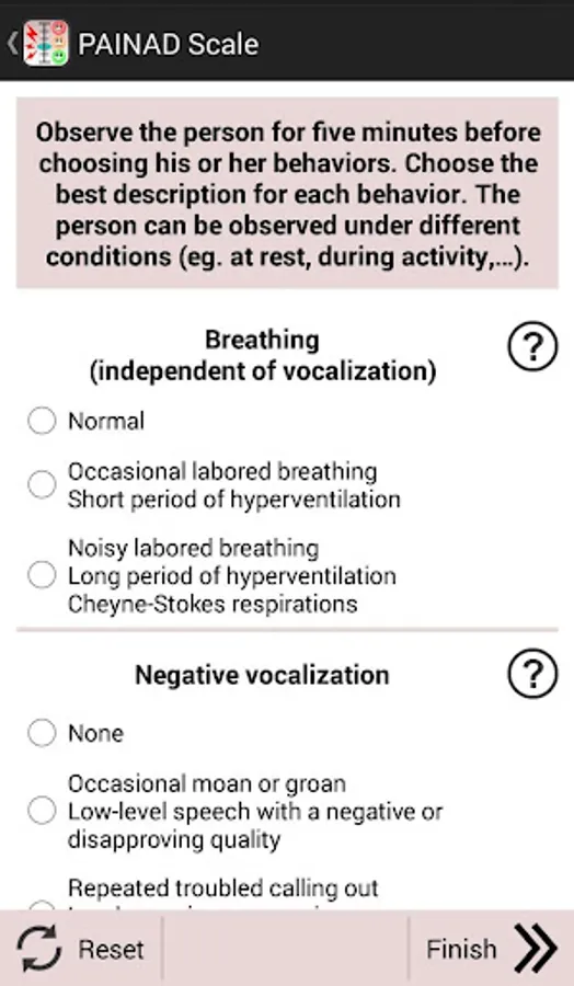 - Pain Assessment in Advanced Dementia scale (PAINAD)