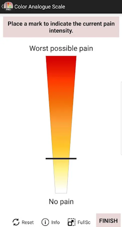 Quantification of the pain intensity is essential for someone experiencing pain (eg. to report level of pain to others, for monitoring treatment effectivenes, etc.) or when caring for persons with the acute or chronic pain. Most pain assessments are done in the form of self-reporting or observational (for non-verbal persons unable to provide self-report) pain rating scales.
