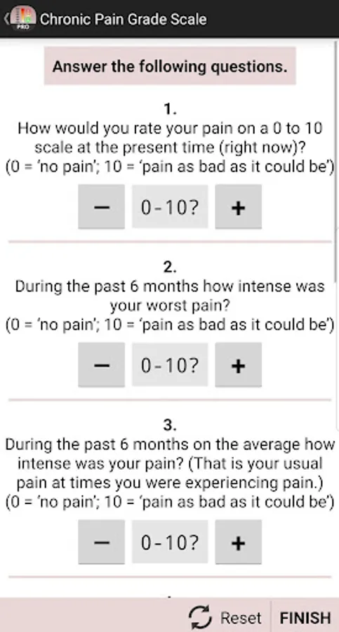 - Chronic Pain Grade Scale (CPGS)