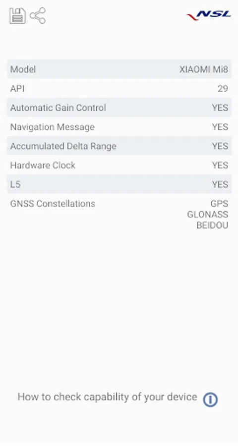 GNSS Check is a very simple application to check the GNSS capabilities of your smartphone. Measured parameters include: Model name, Android version, Accumulated delta range, Automatic gain control, Navigation messages, HW clock, L5 and GNSS constellations.