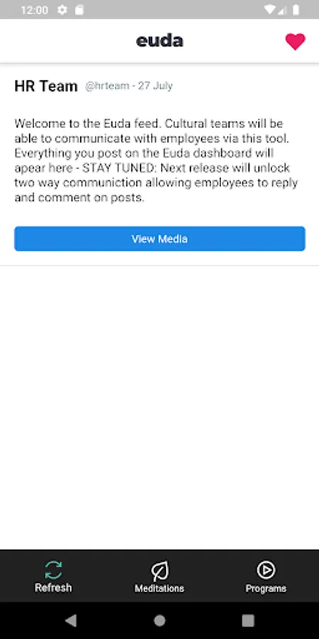 The Euda app helps employees keep up to date with what's happening within your organization. Provide anonymous feedback so that your workplace can focus on improving your wellbeing.