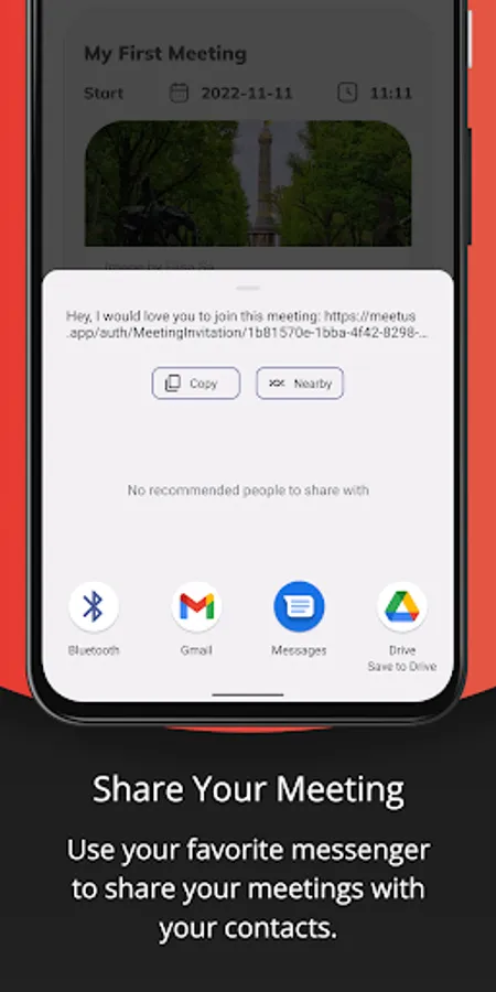 If you haven’t decided yet, use our newly developed feature to find new places. MeetUs will suggest bars/restaurants/cafes and much more based on the position of all participants. You are then able to choose from multiple options located in the geographical center of all participants.