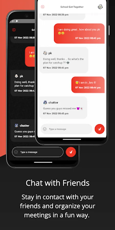 Message all friends in the meeting using our chat feature to plan your activity conveniently.