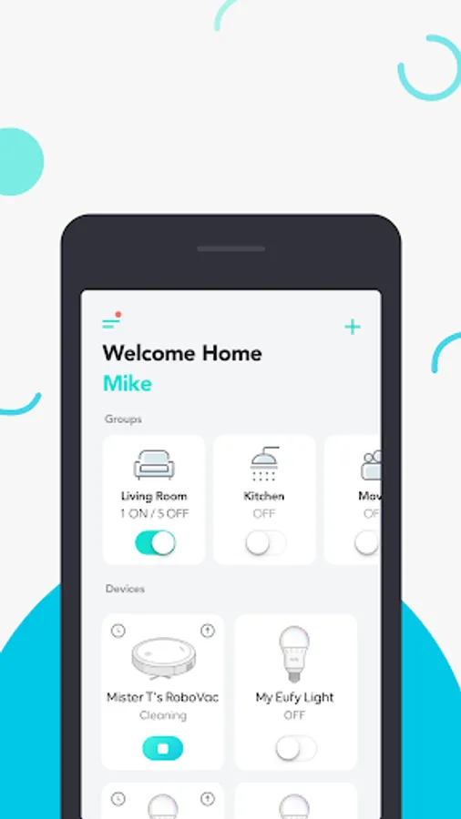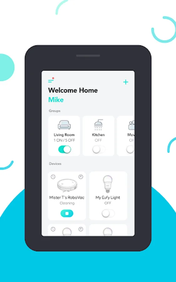 - Using devices: After successfully pairing the new device, it will show up in the device list. Simply tap the icon you wish to use and start enjoying the Eufy smart home experience.