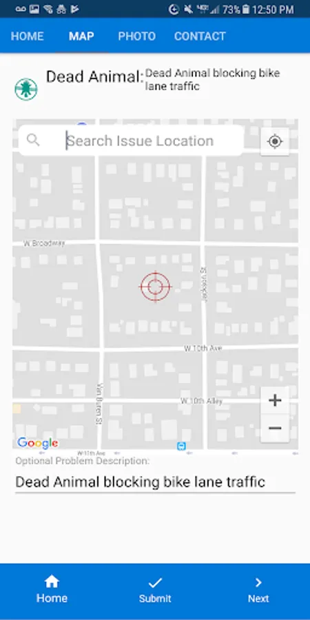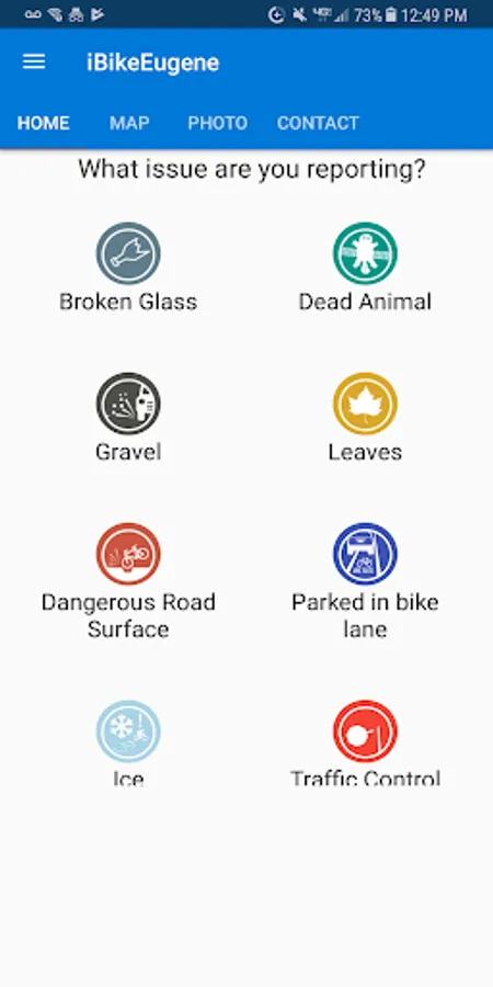 The iBikeEugene mobile app provides a mobile UI front-end to request and/or report incidents to the City of Eugene Maintenance Division.